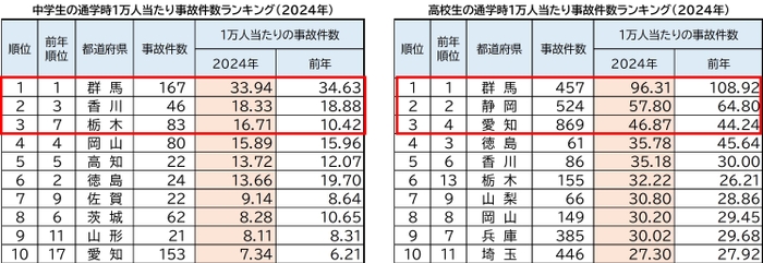 これは、単に私たちの願いがかなったというだけでなく、この交差点の歩車分離信号化の持つ意味は、つぎに示す群馬県の自転車通学生の命を守る事故防止対策の一助として大きな影響を及ぼすと感じていたからです。