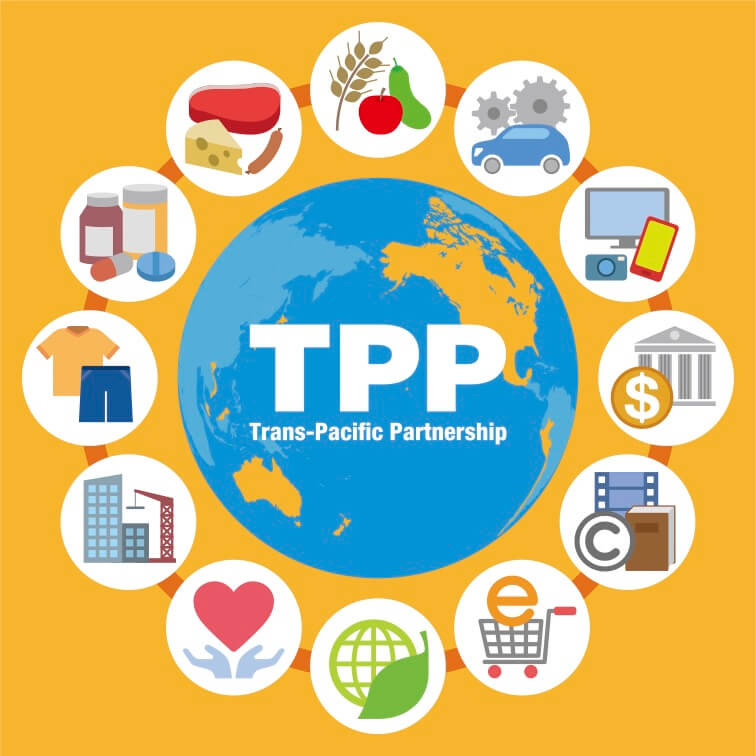 TPPには、「非関税障壁」があり、輸出などに不都合な情報は開示しなくても良い。またFTAへも加盟しているため、食の安全基準も緩和され、モンサントのようなグローバル企業による遺伝子組み換え食品やゲノム編集食品、農薬・抗生物質を大量に使用した農畜産品の輸入増加が懸念される。